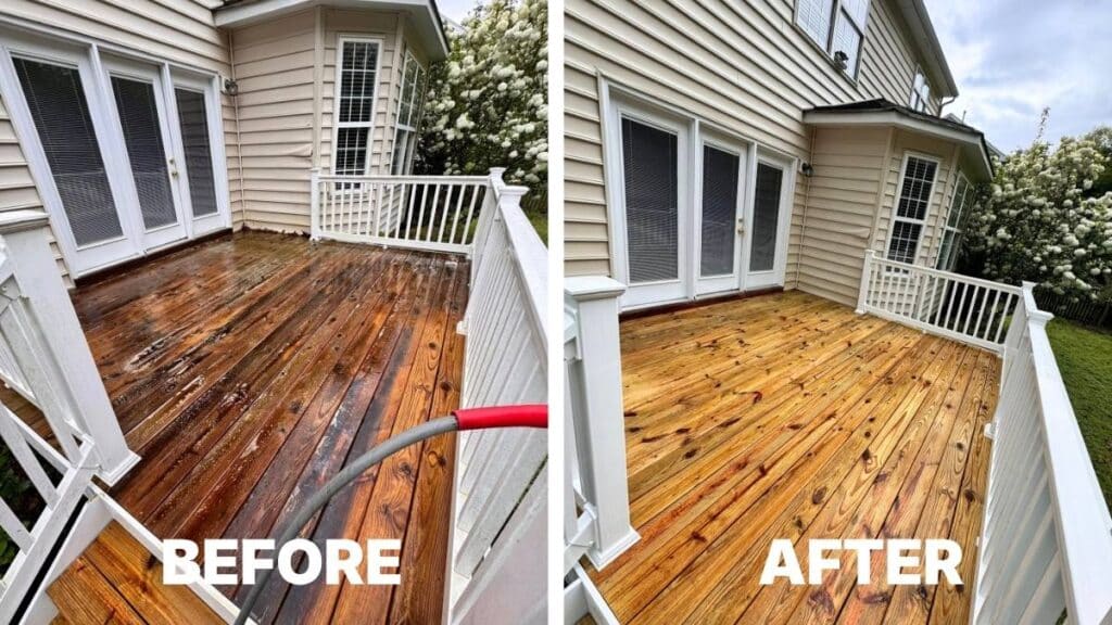 Deck Pressure Washing -Removes grime, mildew, and buildup to restore natural color and beauty.