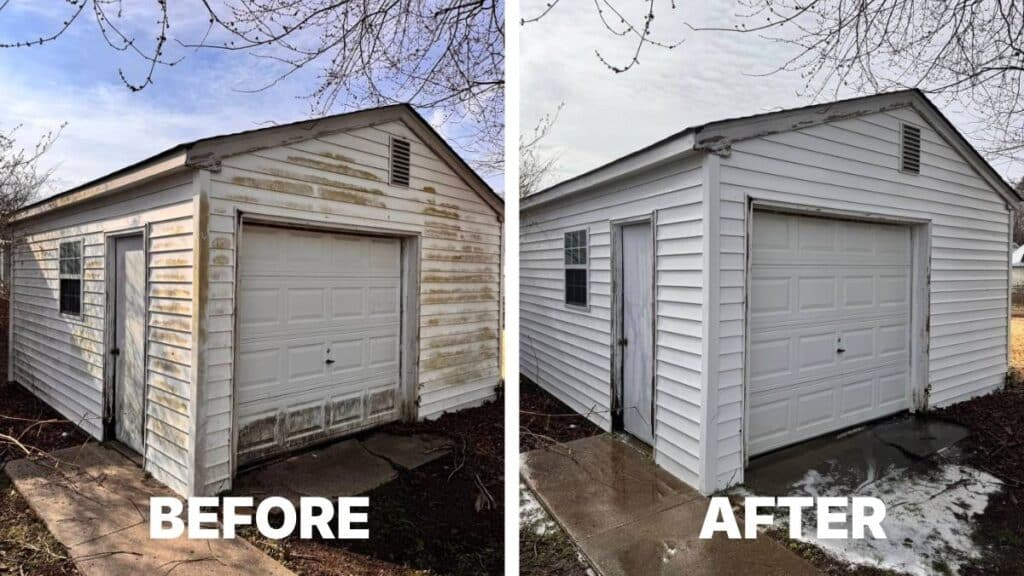 Soft washing is the better choice when you’re dealing with things like algae, moss, or lichen. What you’re seeing isn’t just static dirt. It’s living growth, and it tends to come back fast if you don’t fully kill it.